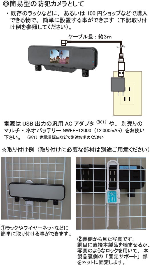 【ルームミラー型ドライブレコーダー マルチツインウオッチャー)】 | |||||||||||||||||||||||||||||||||||||
